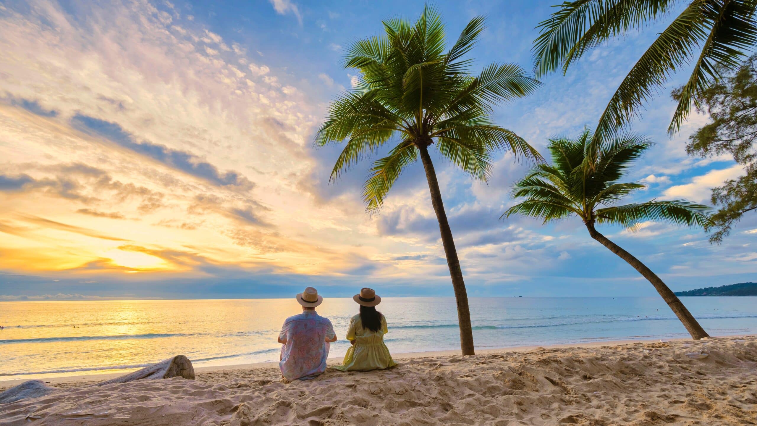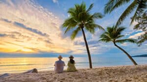 Couple,Men,And,Women,Watching,Sunset,On,The,Beach,,Bang